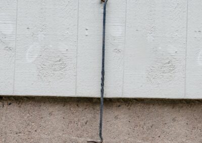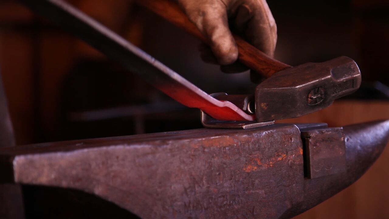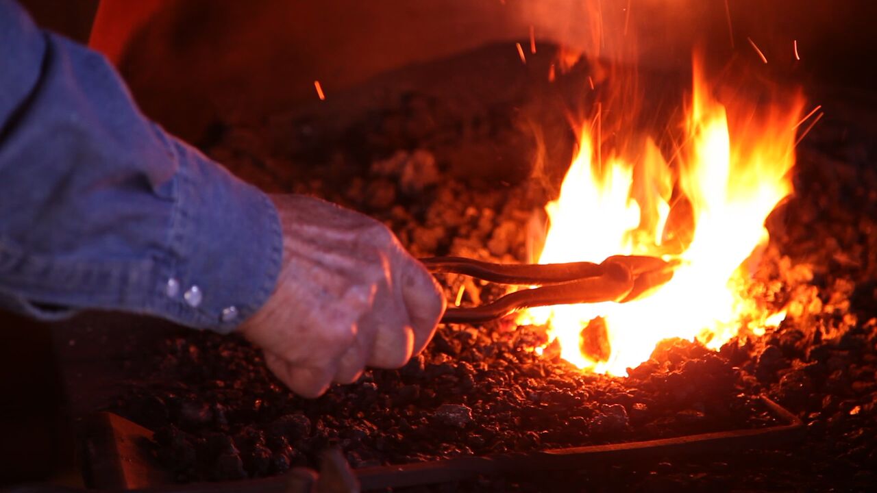 The blacksmithing process begins with steel flat stock sourced from local suppliers. Using a power shear, Freddy cuts the steel to the lengths needed for the hinges to be forged. The stock is heated in a coal forge, which Freddy says grants more control over the temperature and the atmosphere than a gas forge. Utilizing many of the tools that his grandfather used in his shop, such as the forge, anvil, hammers, and tongs, he then shapes the stock using a variety of old-world techniques, such as drawing out, upsetting, and bending, just like the colonial blacksmiths who made the original hardware for their barns hundreds of years ago.