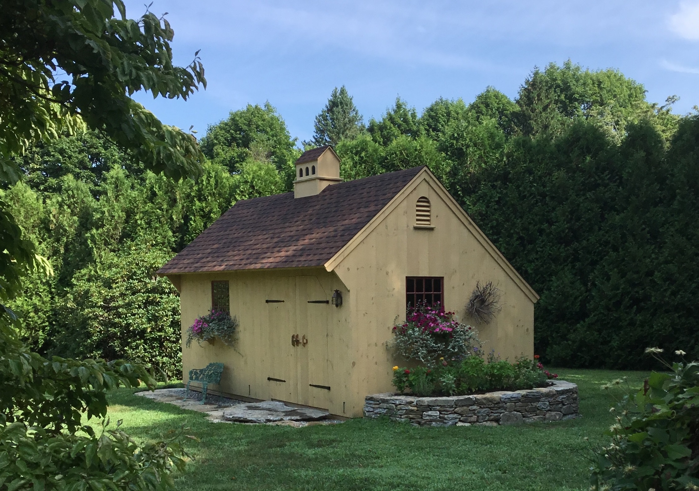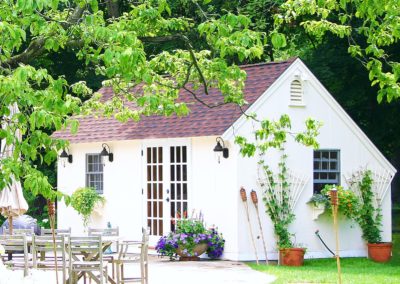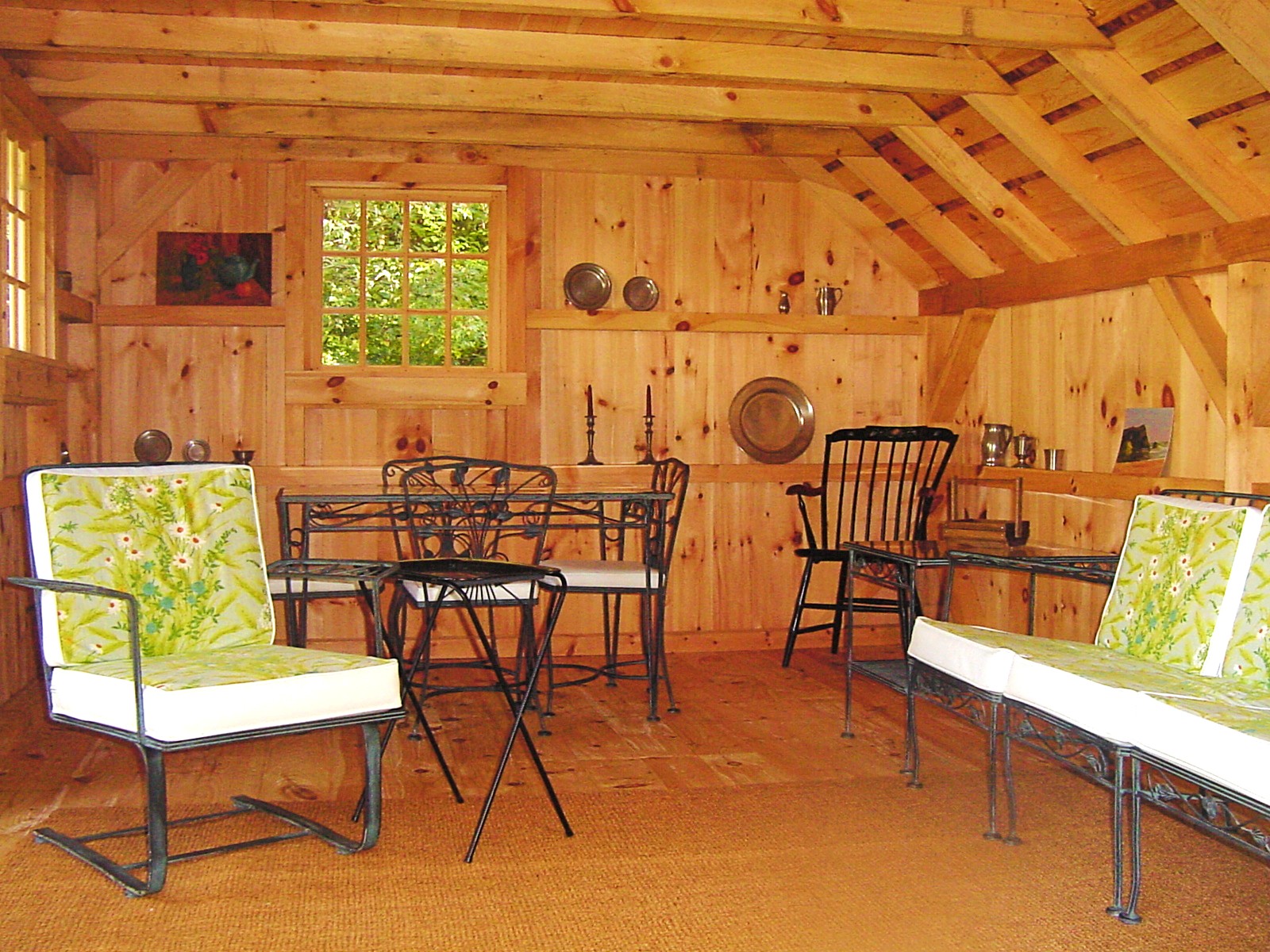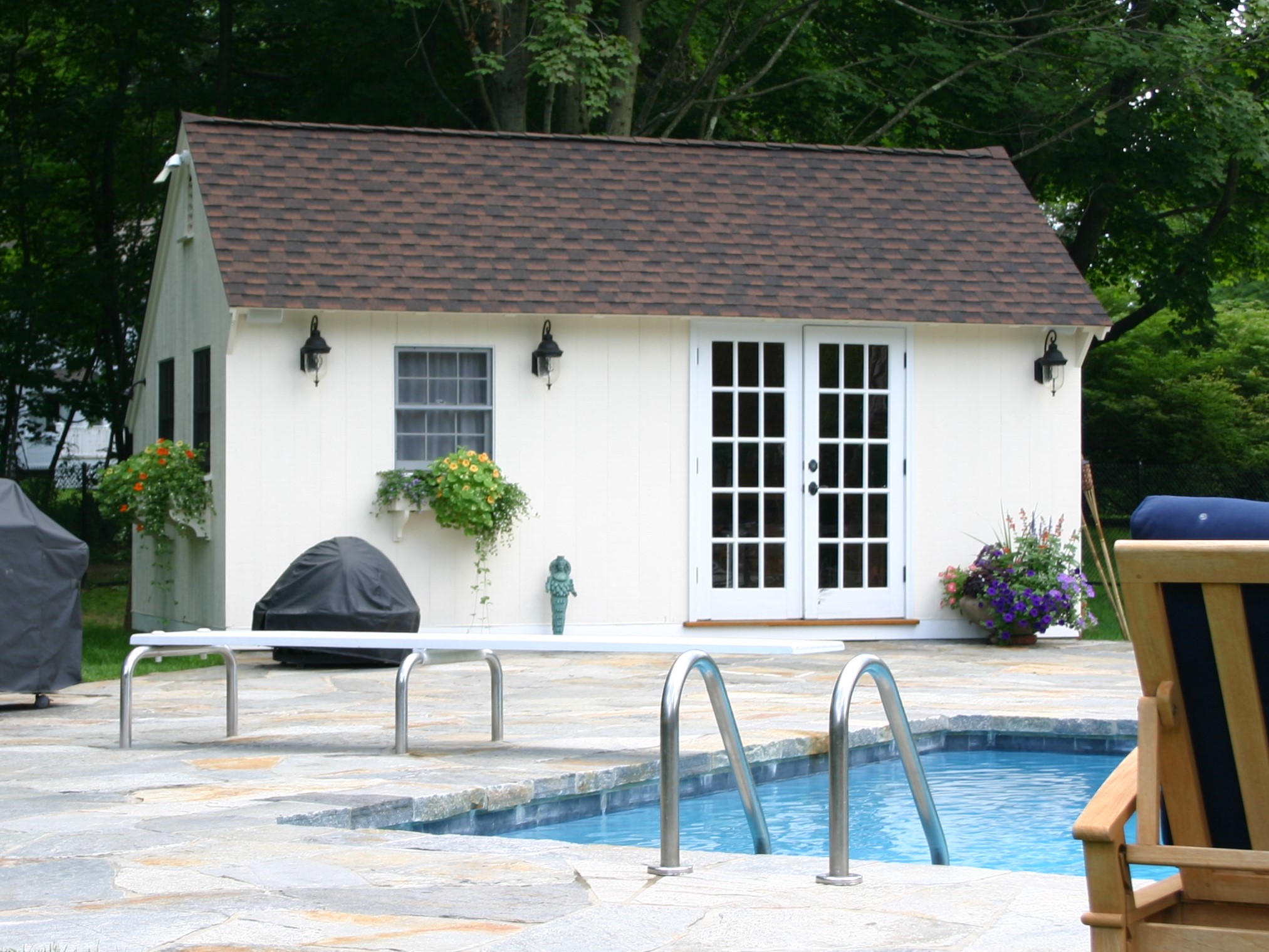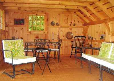 The Pool House & Garden Shed is a scaled-down version of our Carriage House just right for the weekend gardener. A practical part of this outbuilding is its loft which increases the storage space for lawn furniture and other seasonal items. The interior features a post & beam look.