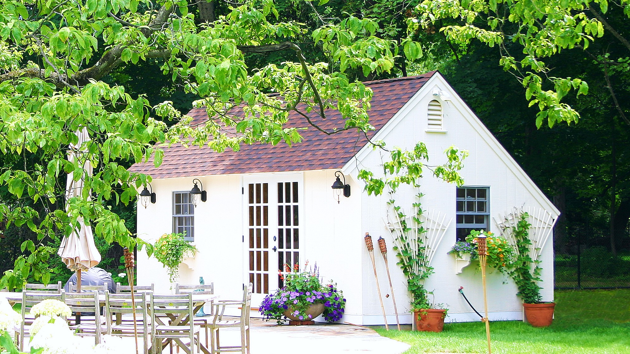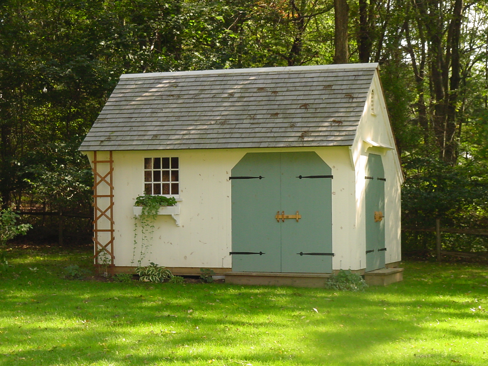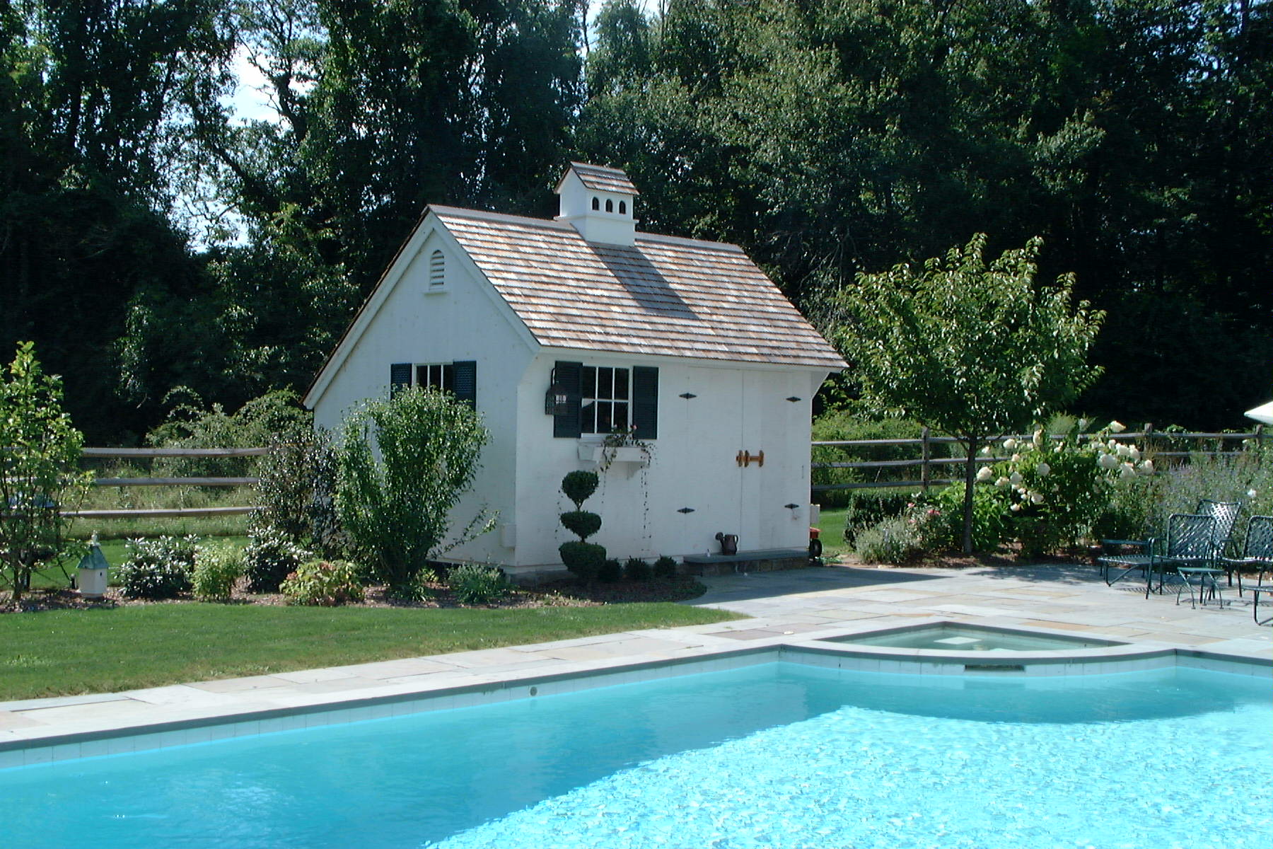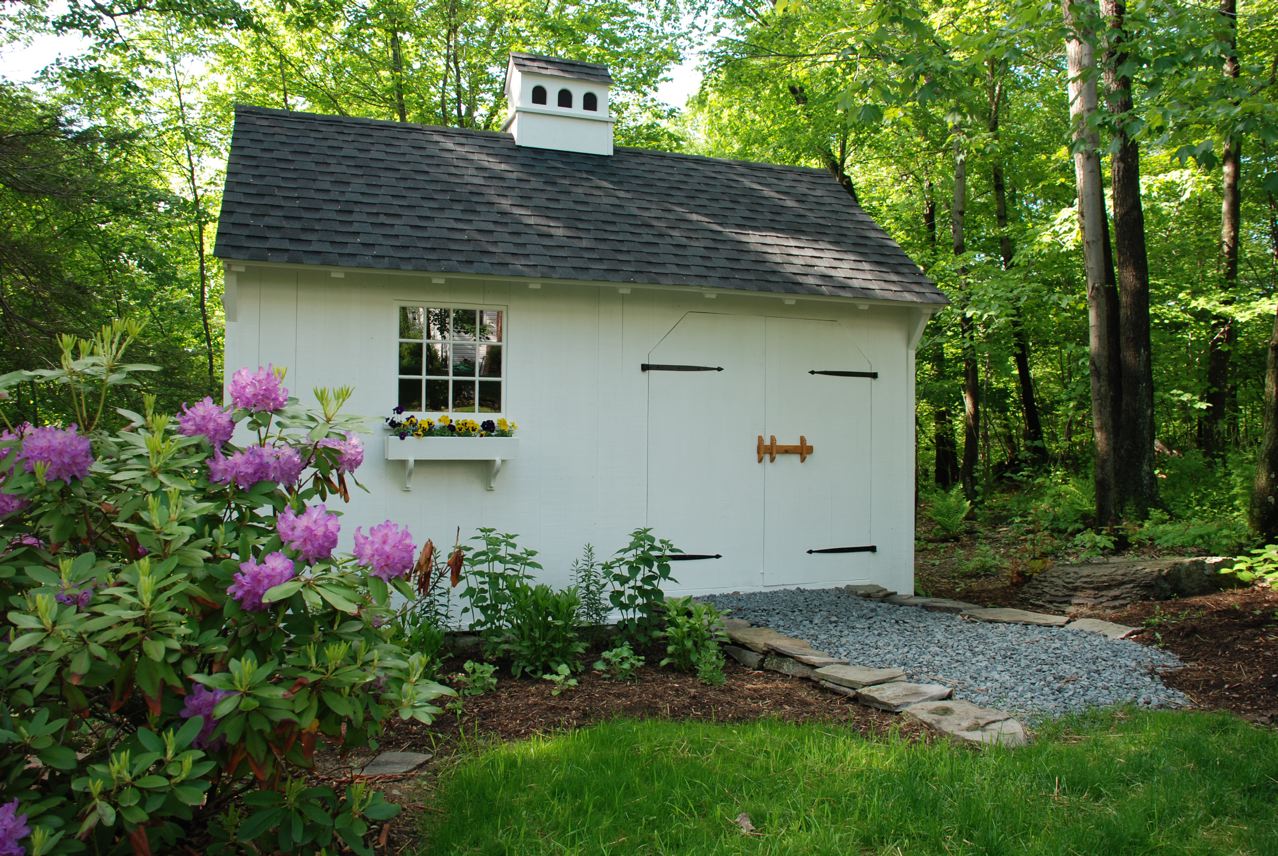 The Pool House & Garden Shed is a scaled-down version of our Carriage House just right for the weekend gardener. A practical part of this outbuilding is its loft which increases the storage space for lawn furniture and other seasonal items. The interior features a post & beam look.