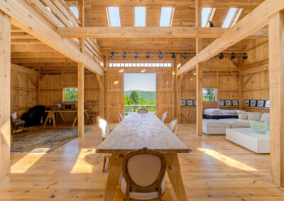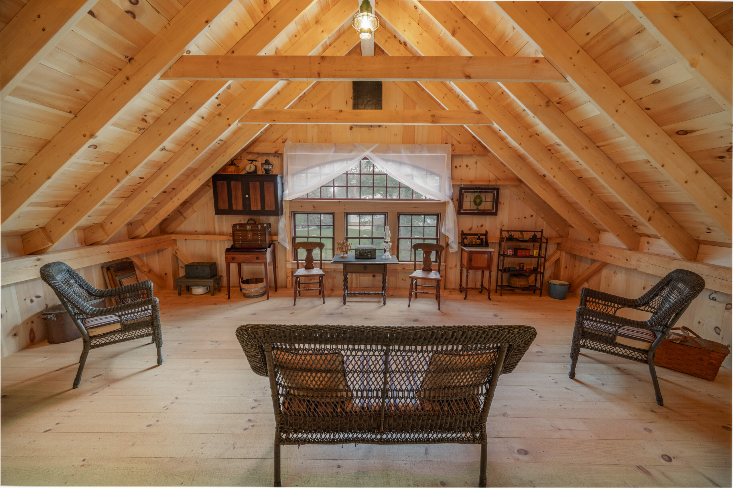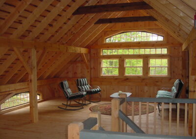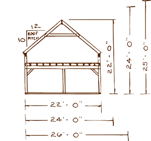 The Addington sports full mortise and tenon main tie-beam connections, and a loft with a 3’ or 4’ knee wall providing extra clearance. The traditional design offers flexibility in the size and location of doors and windows. The Addington is the namesake of long-time employee Rob Addington who has expertly handcrafted the mortise and tenon connections of our Two Story models for over 20 years.
