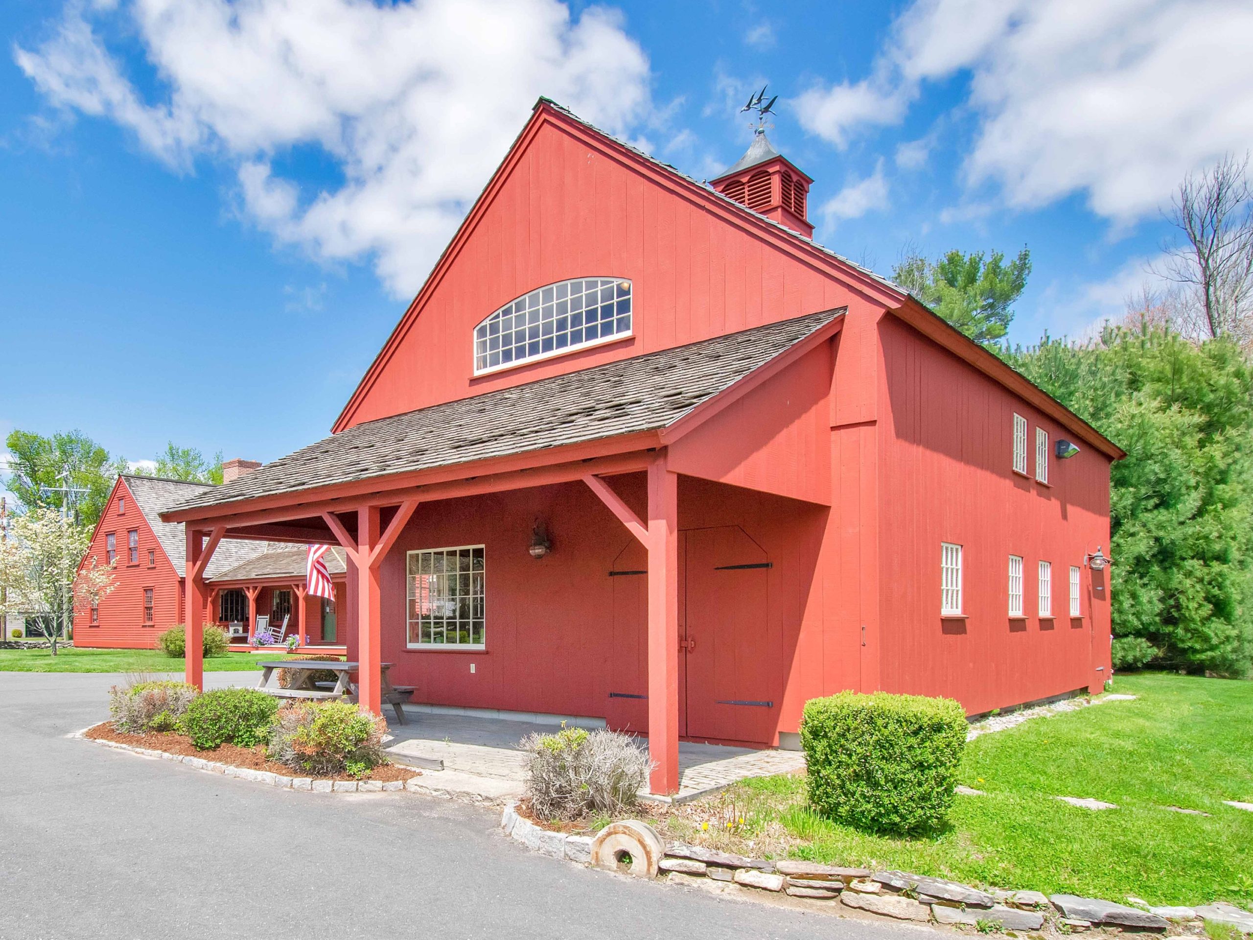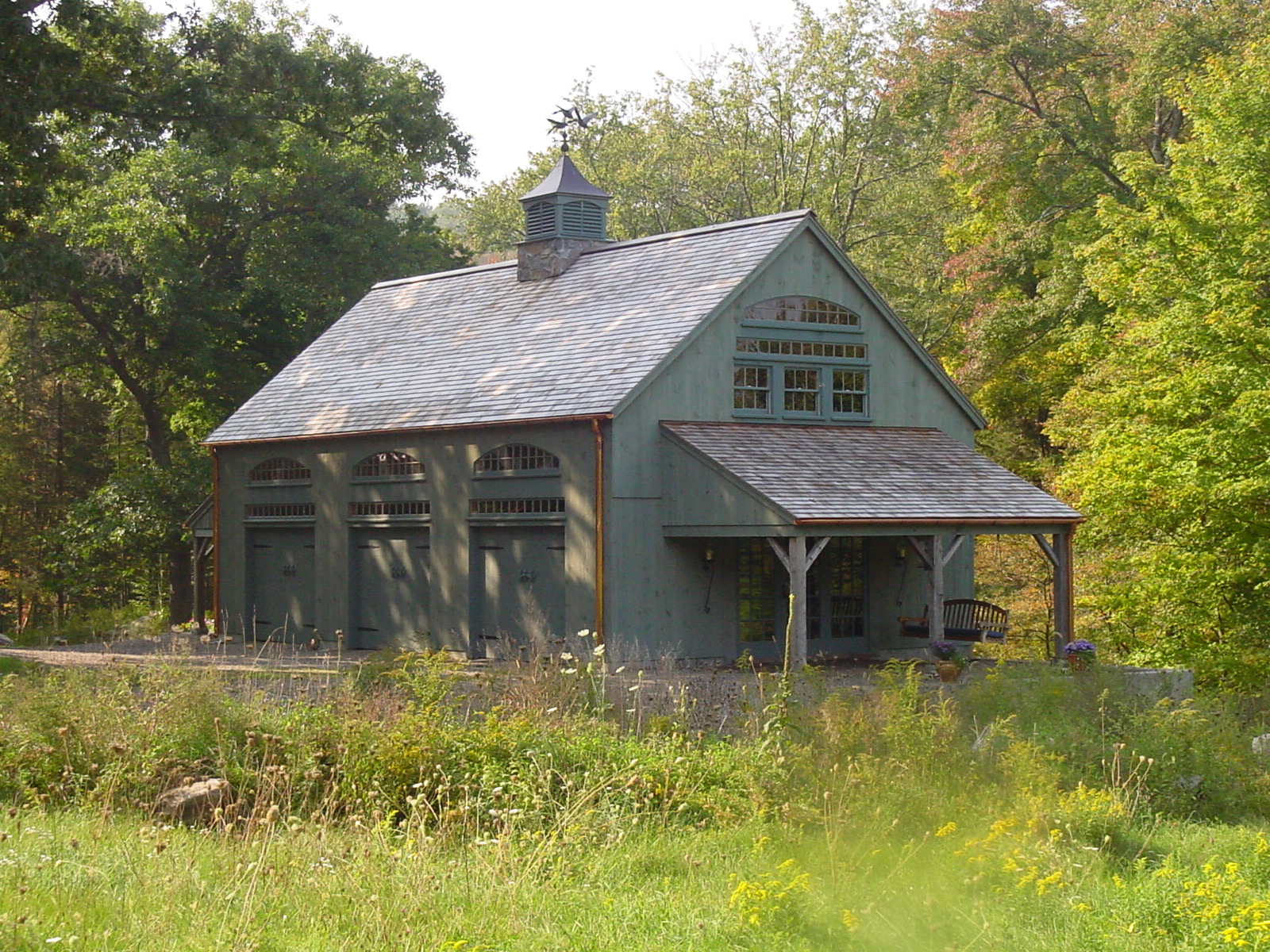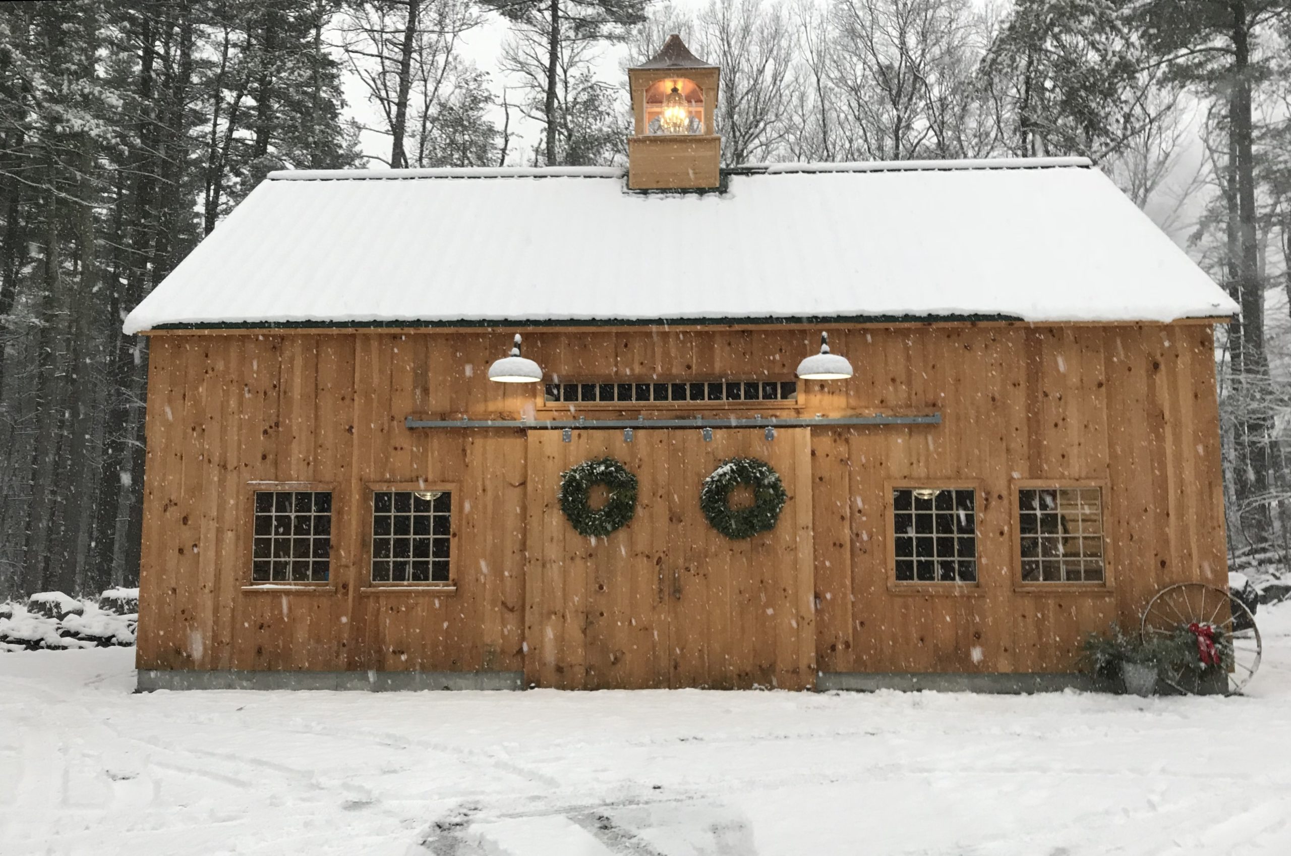22′ x 36′ Addington shown with optional louvered cupola, 9′ x 7′ and 9’ x 8’ swing-out doors, walk-out and loft doors, 9′ transom and barn sash windows.