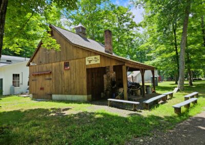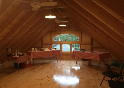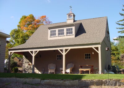 24′ x 24′ Hemingway shown with 2 10′ Open Lean-to’s, 9′ x 7′ swing-out and walk-out doors, 9′ transom, and 12-lite double-hung windows.